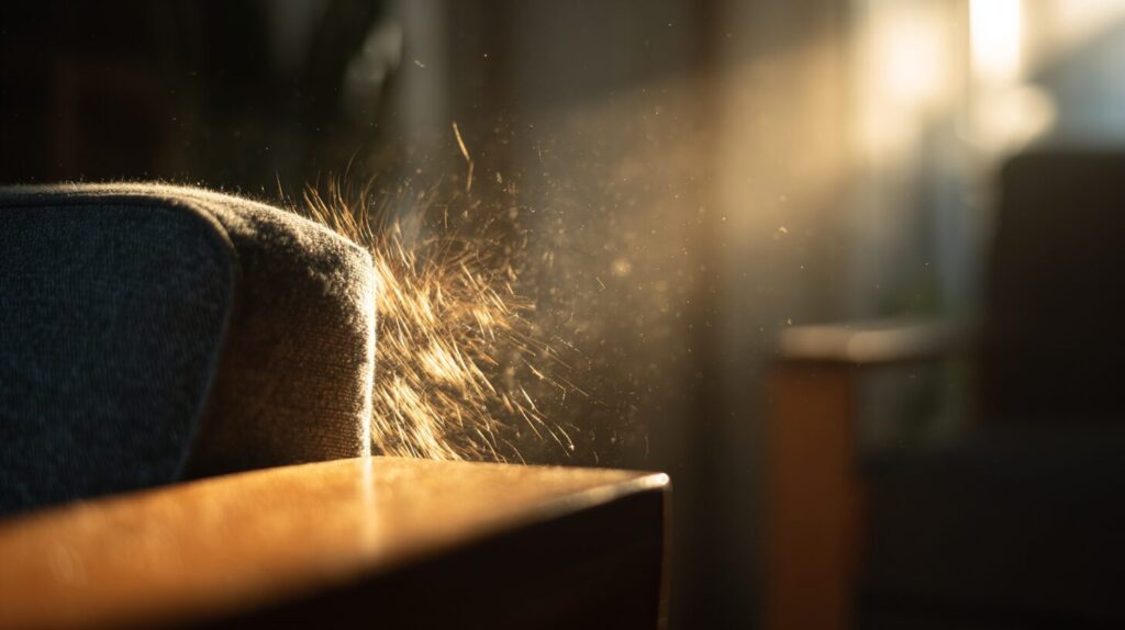 朝、リビングの掃除をしていたら、ソファの隅からふわっと白い毛が舞い上がった——。